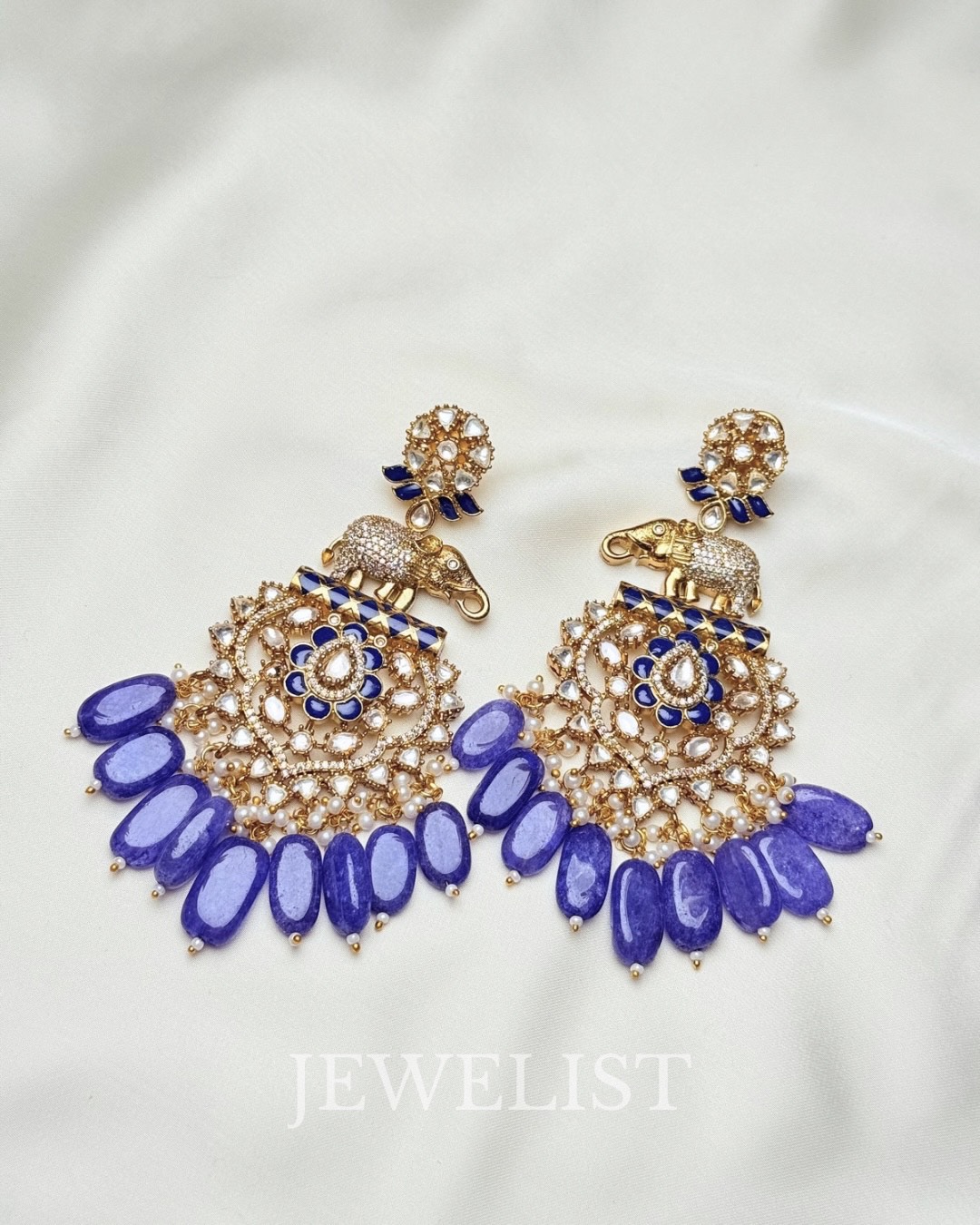 Azure Elephantine Earrings are designed for those who embrace statement jewellery with meaning. Exclusively curated by Jewelist.pk, these striking earrings celebrate cultural symbolism, ornate craftsmanship, and dramatic South Asian design.