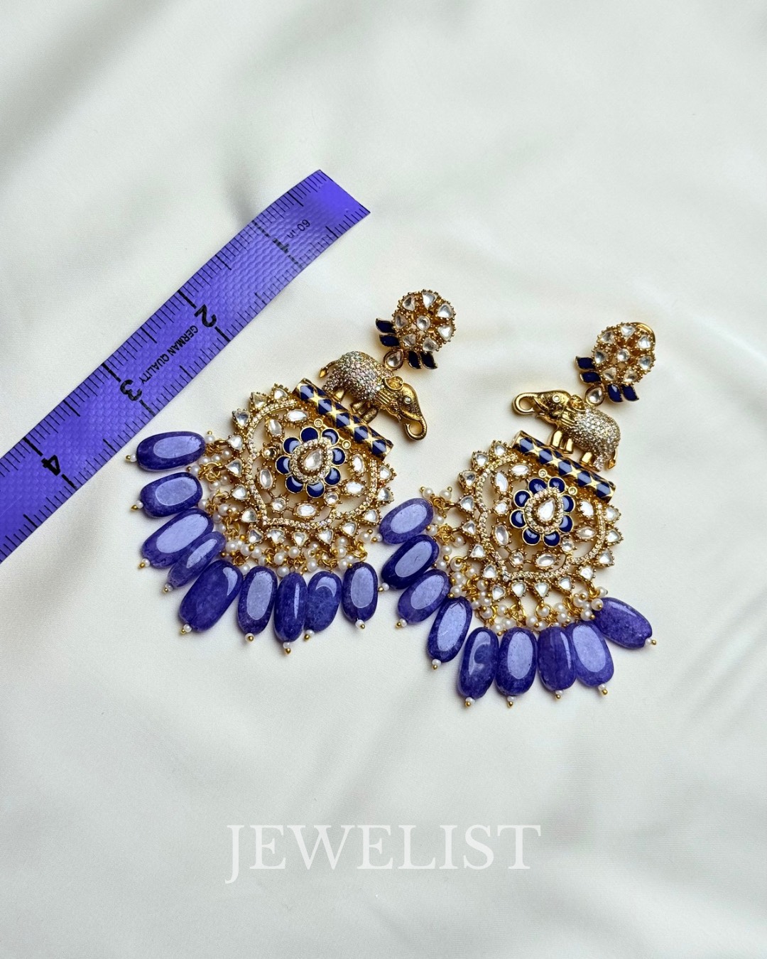 Measuring approximately 4 inches in length, the Azure Elephantine Earrings are unapologetically bold—true statement pieces designed to be the centerpiece of your ensemble. Despite their visual impact, they are crafted using high-quality artificial jewellery materials to ensure comfortable wear during extended occasions.