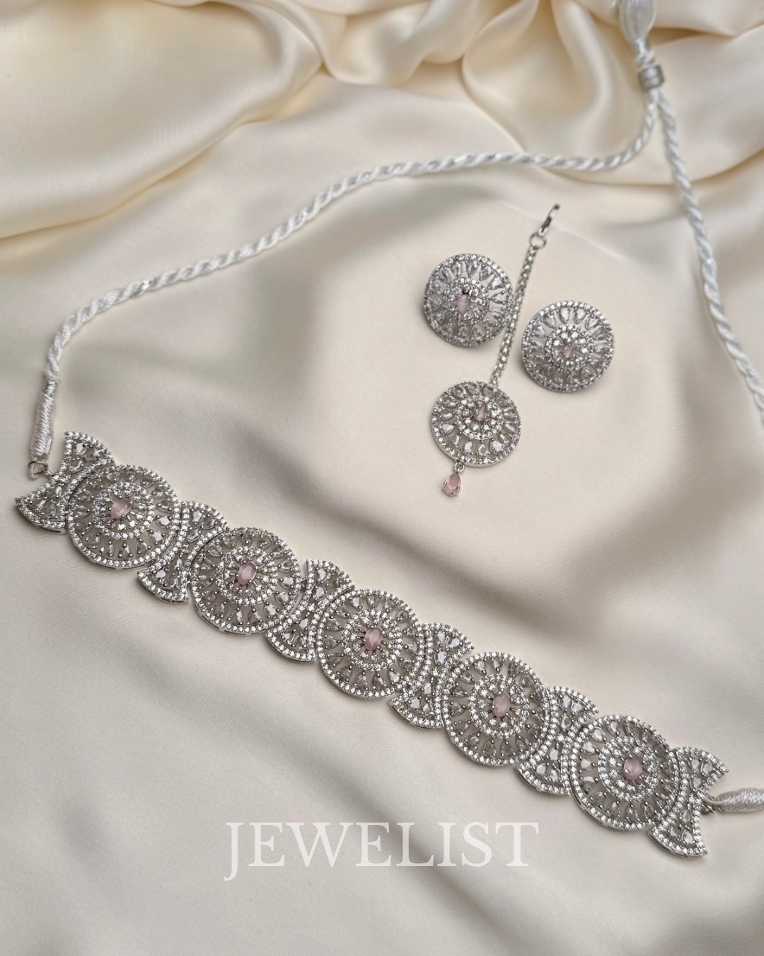 As a trusted Pakistani jewellery brand, Jewelist Jewellery specializes in premium artificial jewellery that captures the beauty of fine jewellery without heaviness or excessive cost. The Celestial Blush Choker Set is ideal for bridal wear, nikkah ceremonies, engagement events, festive gatherings, and formal occasions. Its soft blush tones pair beautifully with ivory, pastel, silver, and champagne outfits, making it a versatile addition to your jewellery collection.