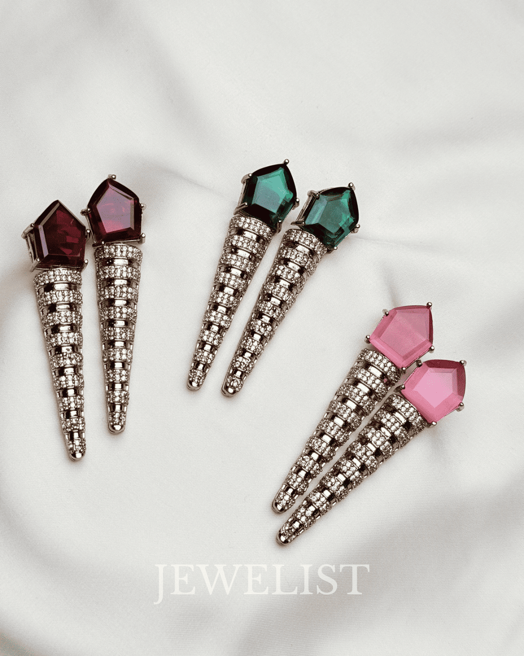 Pair them with a minimal necklace, sleek bangles, or a subtle ring to allow the earrings to remain the focal point. If you are searching for statement earrings in Pakistan that combine color, sparkle, and confident design, Crown Cone Earrings are your go-to choice.