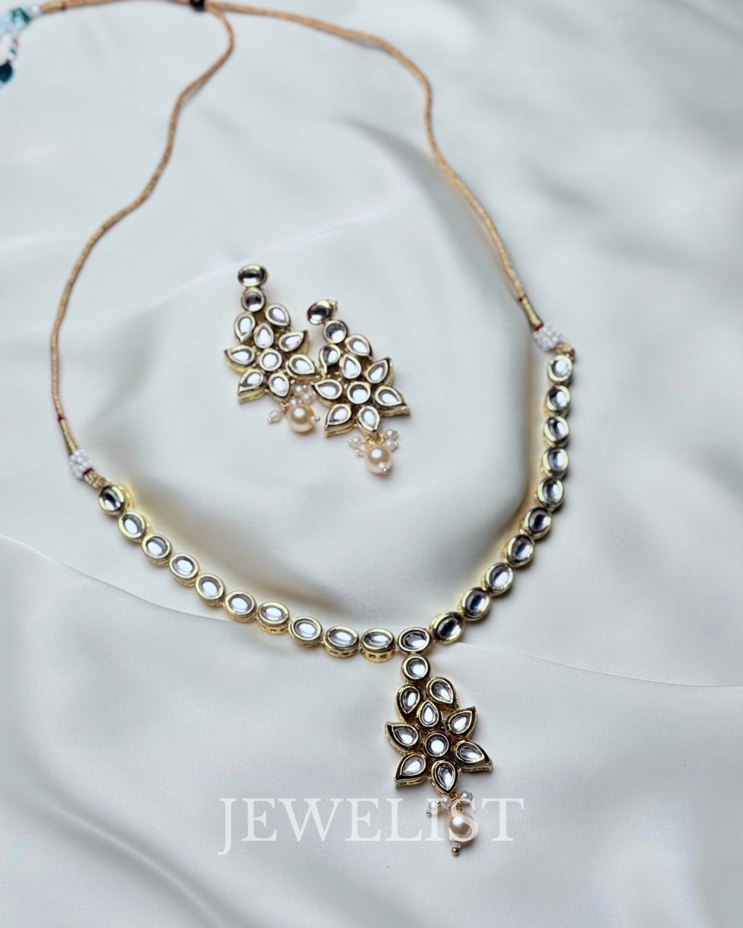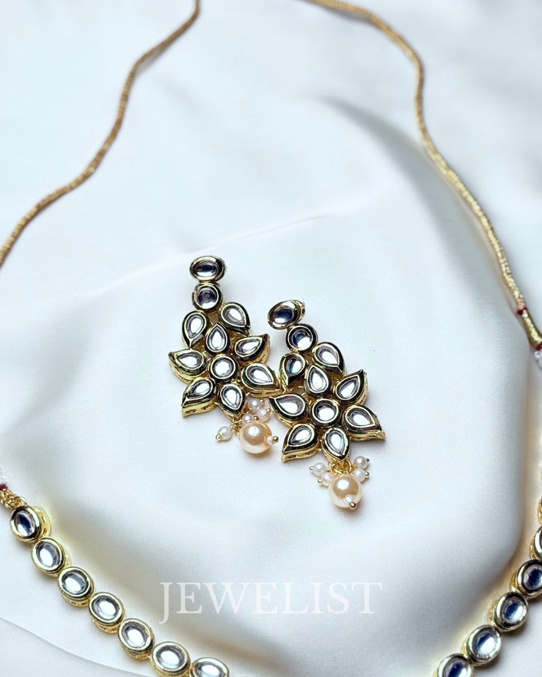 Flower Kundan Set by Jewelist.pk is a beautifully crafted jewellery piece that celebrates traditional South Asian artistry with a modern, minimal elegance. Designed using premium artificial Kundan stones, this set features the classic flat-cut mirror detailing that makes Kundan one of the most cherished styles in Pakistani Jewellery and Indian jewellery traditions.