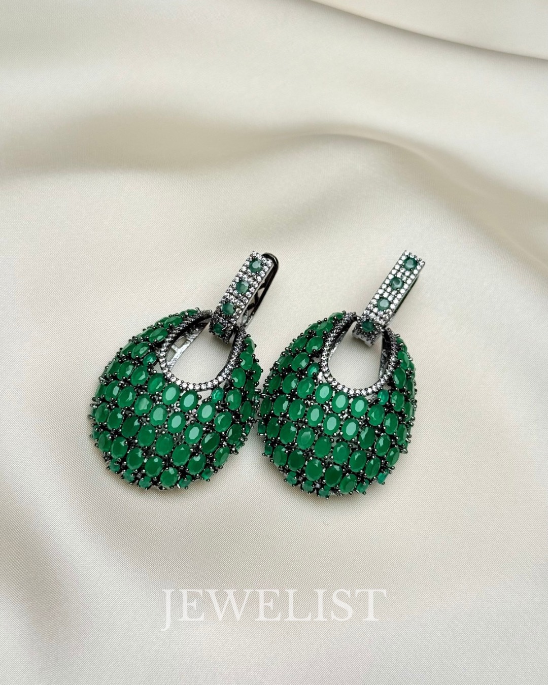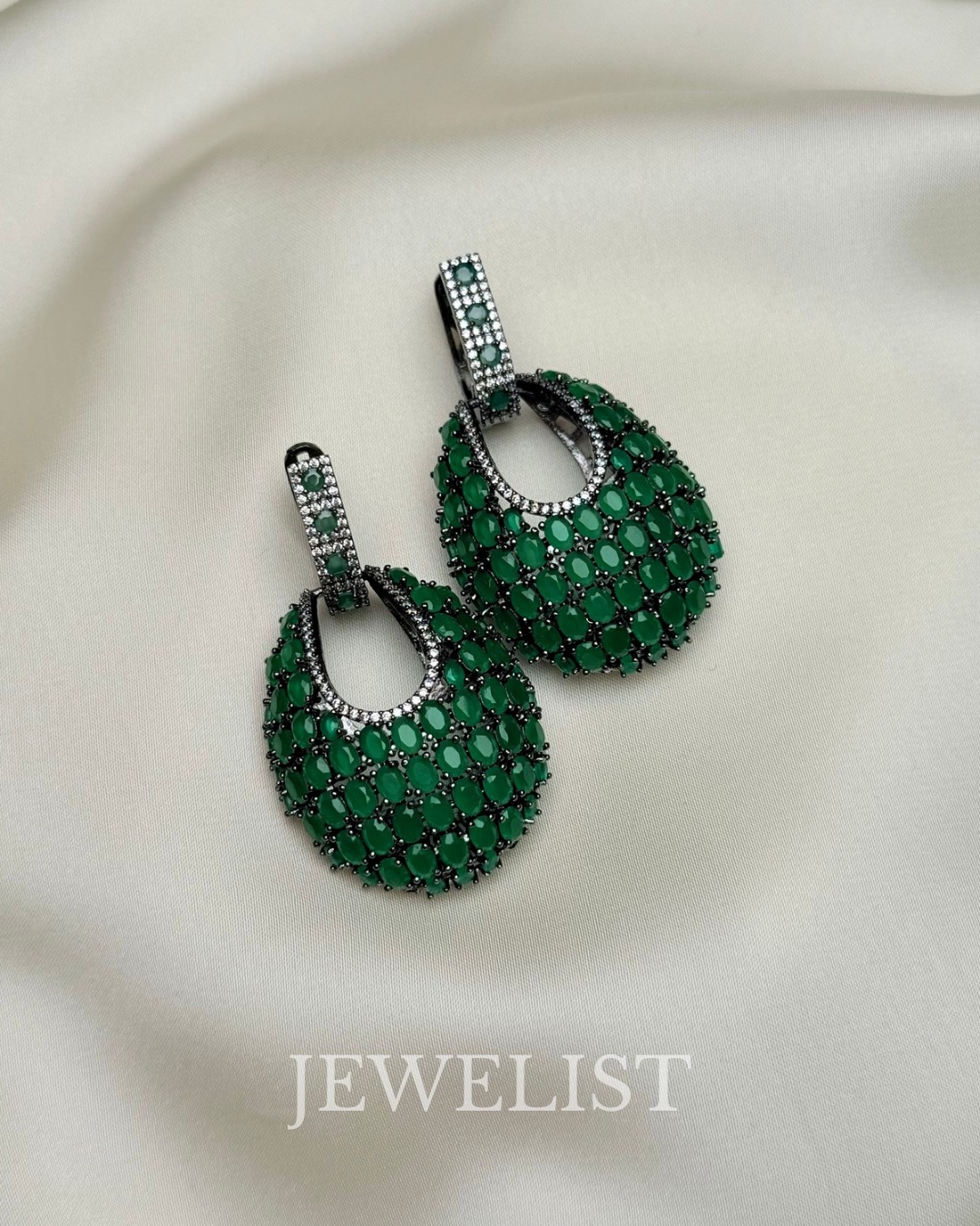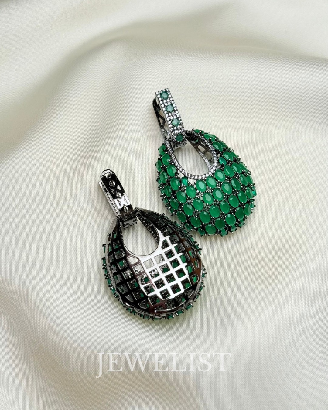 Paved Drop Hoops Earrings – Green – Jewelist.pkPaved Drop Hoops