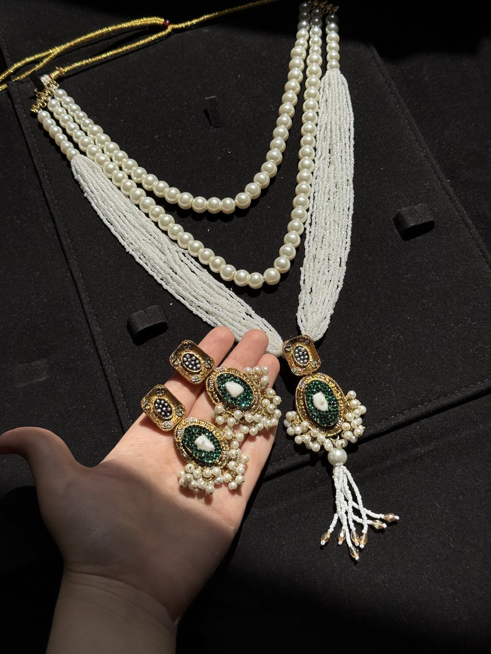 At Jewelist.pk, we believe in offering jewelry that captures the essence of timeless beauty. Our Emerald Accent Three-Layer Pearl Mala Set is a testament to our commitment to providing exquisite, affordable pieces that enhance your personal style. Shop now and add a touch of regal charm to your collection!