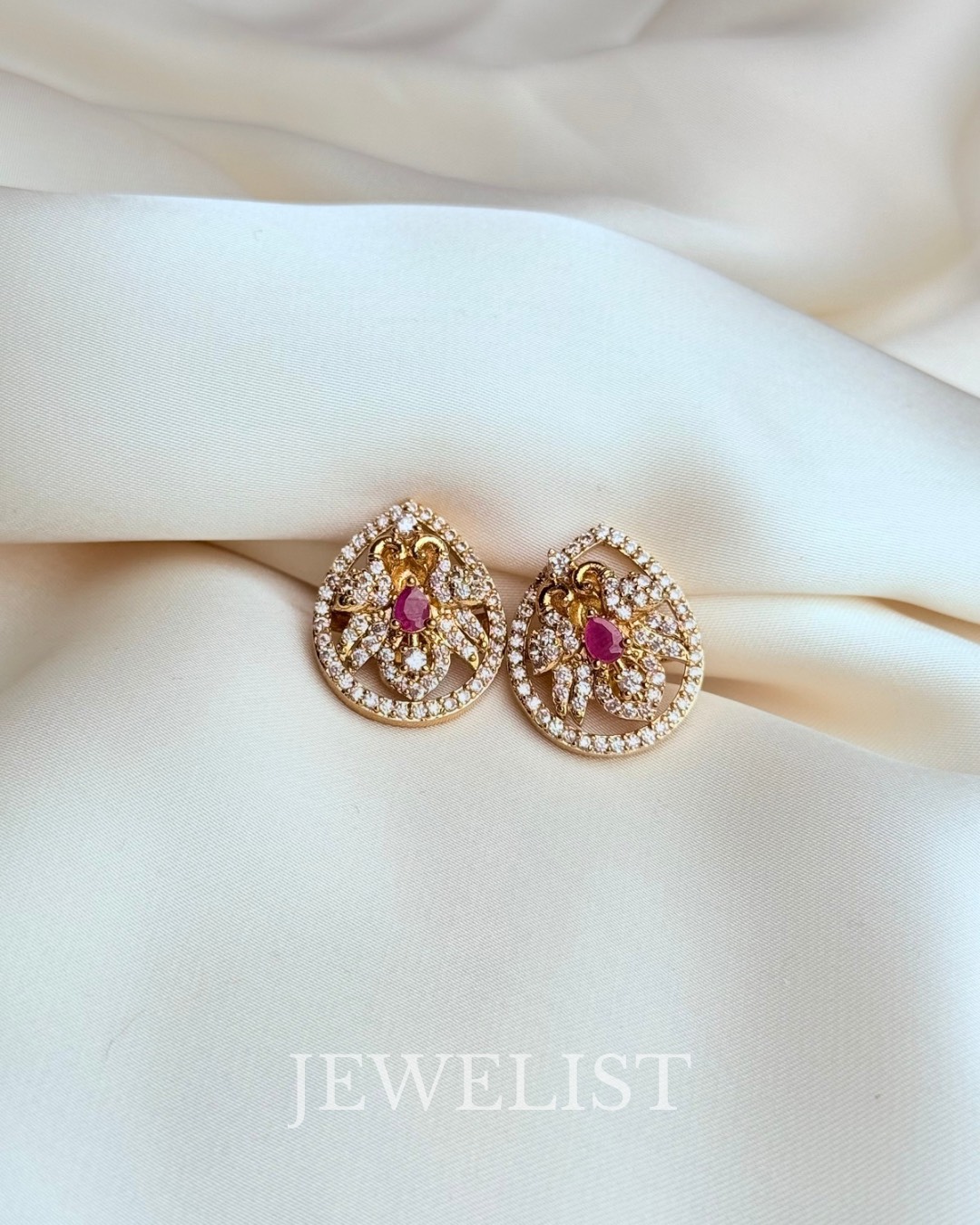 The set includes a beautifully detailed floral cluster stud—small, intricate, and elegant enough for daily wear. The second component, a larger teardrop-shaped jacket, instantly transforms the look into a statement piece. Together, they create an ornate ethnic design enriched with CZ sparkle, gold-toned detailing, and traditional Pakistani aesthetic influences. The teardrop jacket frames the stud perfectly, adding depth, shine, and festival-ready glamour.