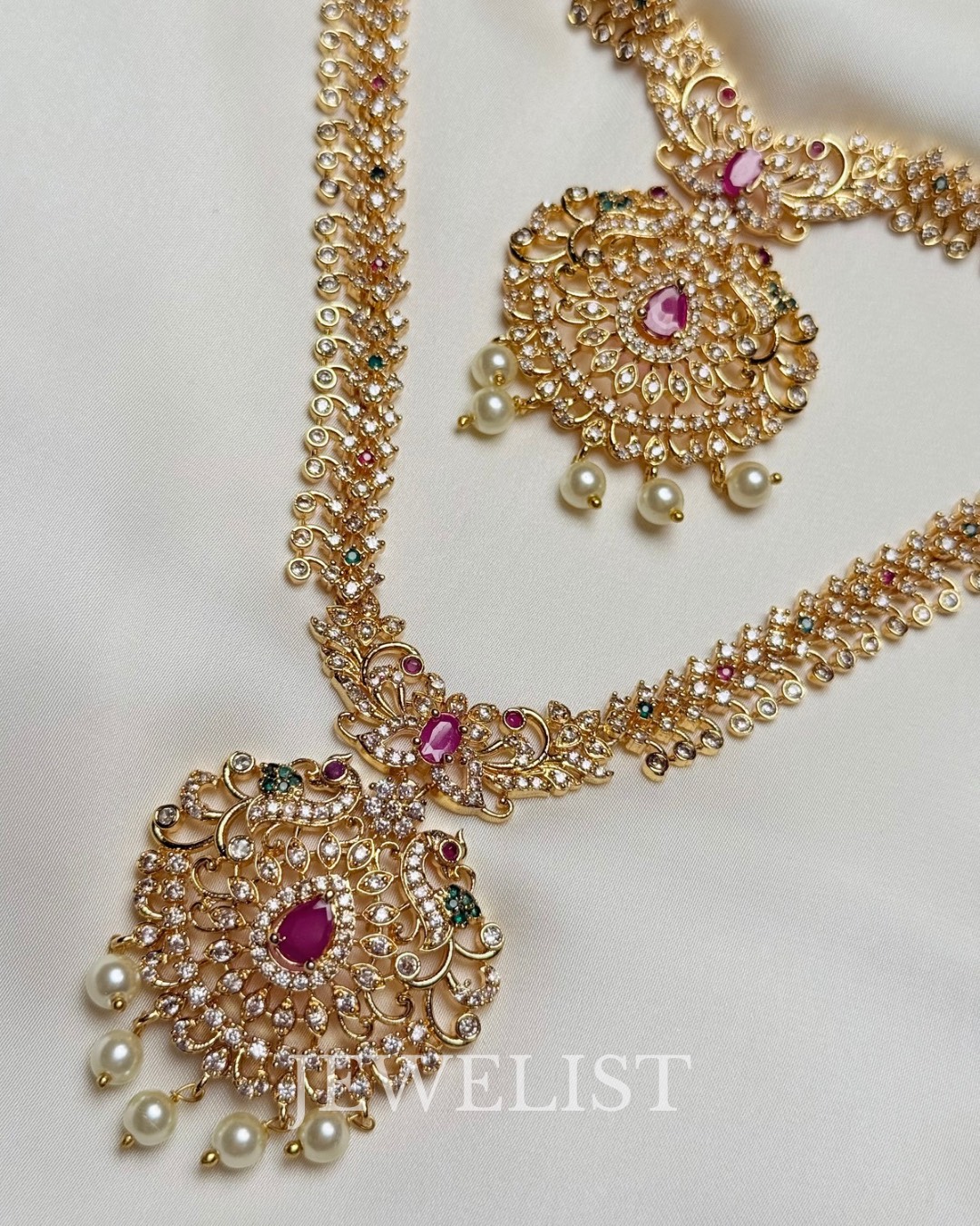 The Zunaira Set by Jewelist.pk captures the soul of traditional Pakistani jewellery with a touch of modern bridal charm. Handcrafted with fine attention to detail, this elegant gold-plated jewellery set brings together radiant ruby stones, shimmering zircons, and delicate pearls — a combination that defines sophistication and grace.